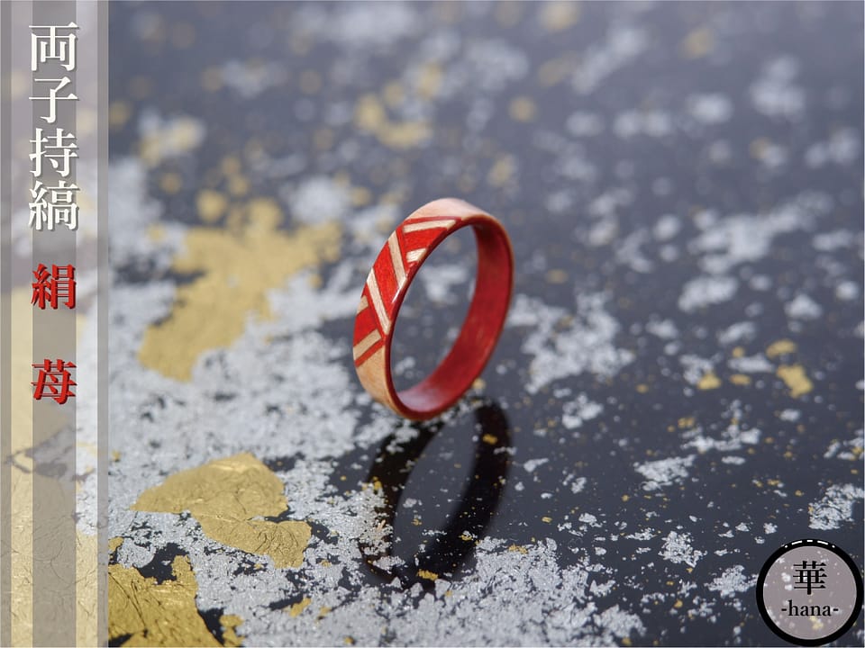 【紬-tsumugi- project】木のゆびわ 華-hana- 両子持縞 絹苺