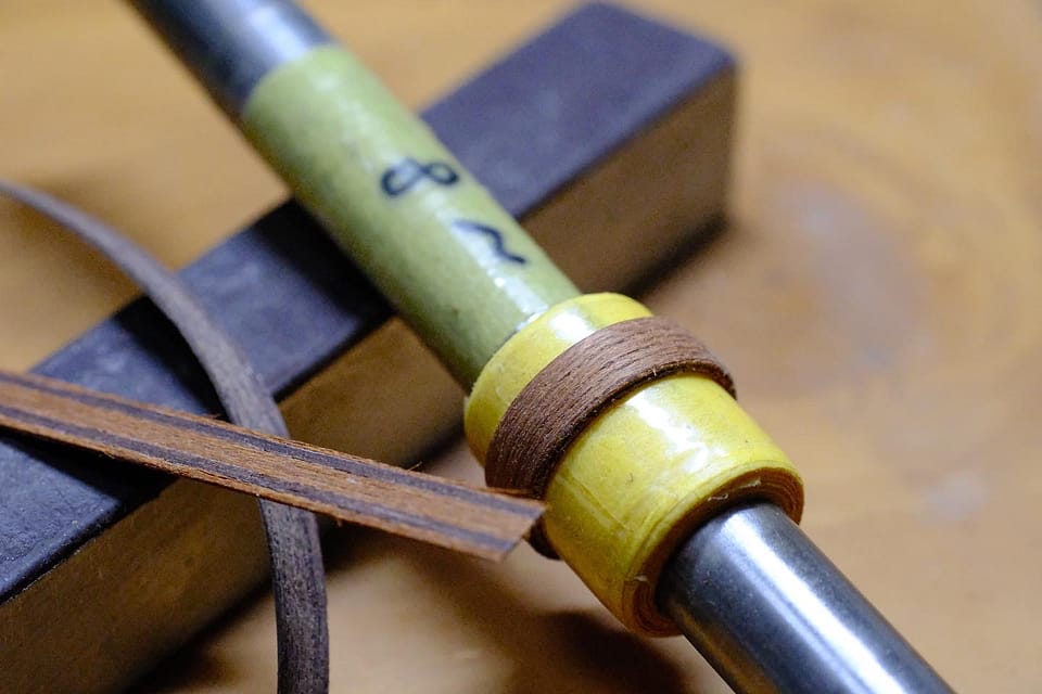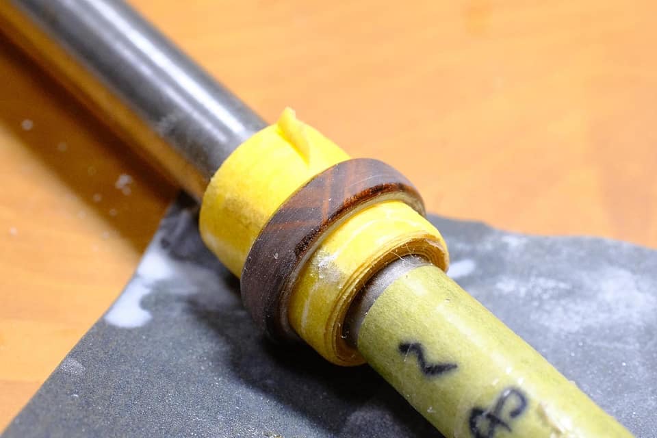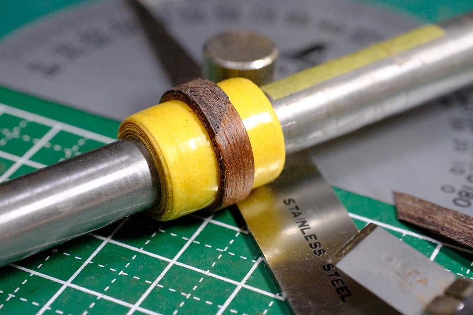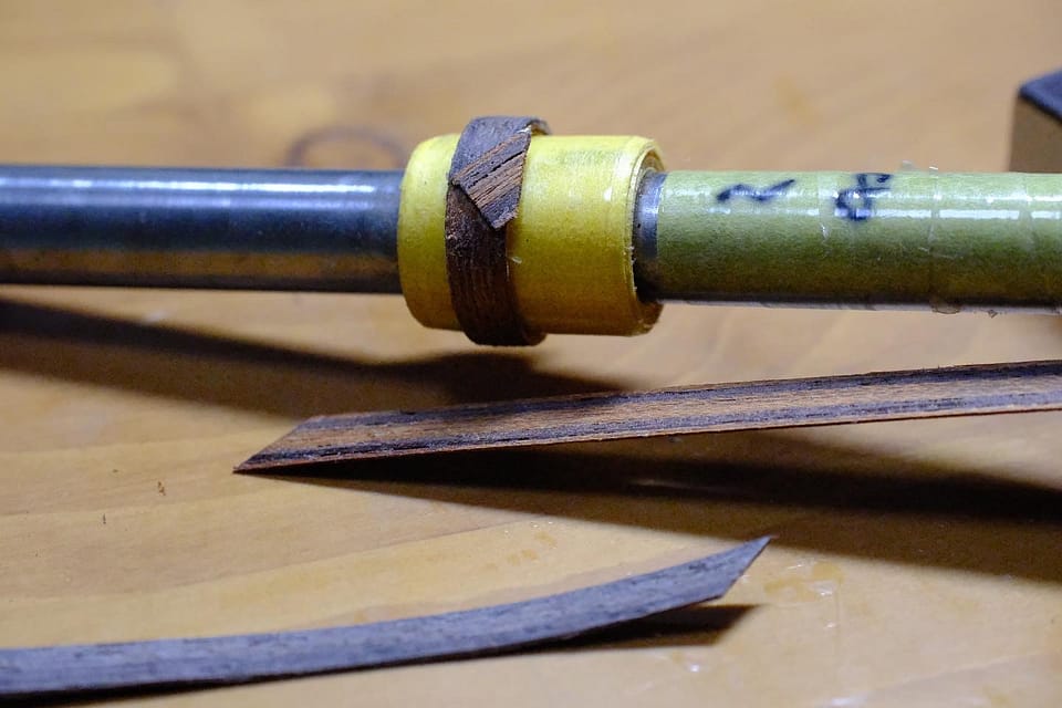 内巻きは約0.5mmのロイヤルチェリー材を使用し、2周の巻きつけによって1mm厚を確保しました。