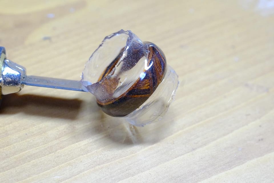 「垂れたレジンが指輪と同じ高さになる」まで、今回は塗り付けと硬化を6度繰り返しました。