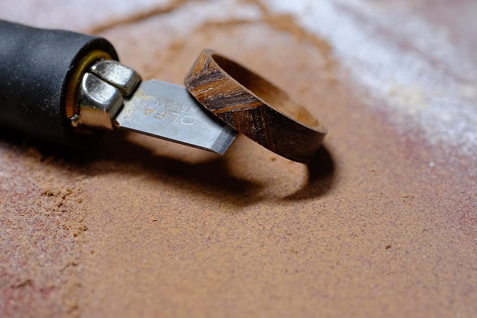 研磨代を加味できない寄木材は刃の厚みで0.1mm単位までズレることがあるので、1本切り出すごとにカッター刃を折り、常に一番切れる状態にしておきます。