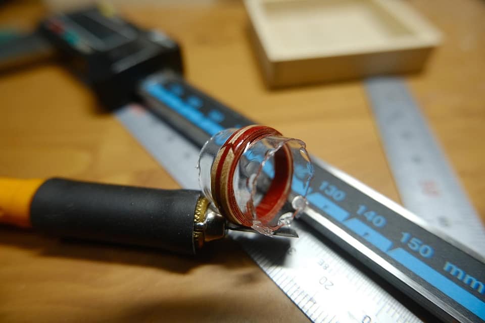 今回は14号での製作のため、内側の塗膜を加味し15号に合わせた治具を作ります。