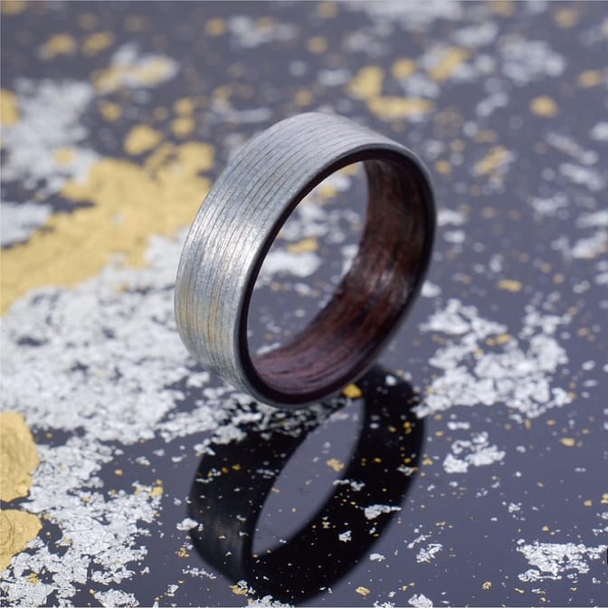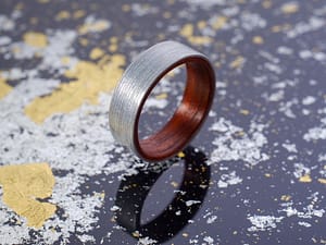 「突板」と呼ばれる厚さ0.2~0.5mmほどの木材を丸めて重ねたベントウッドリングと呼ばれる指輪です。