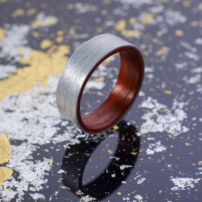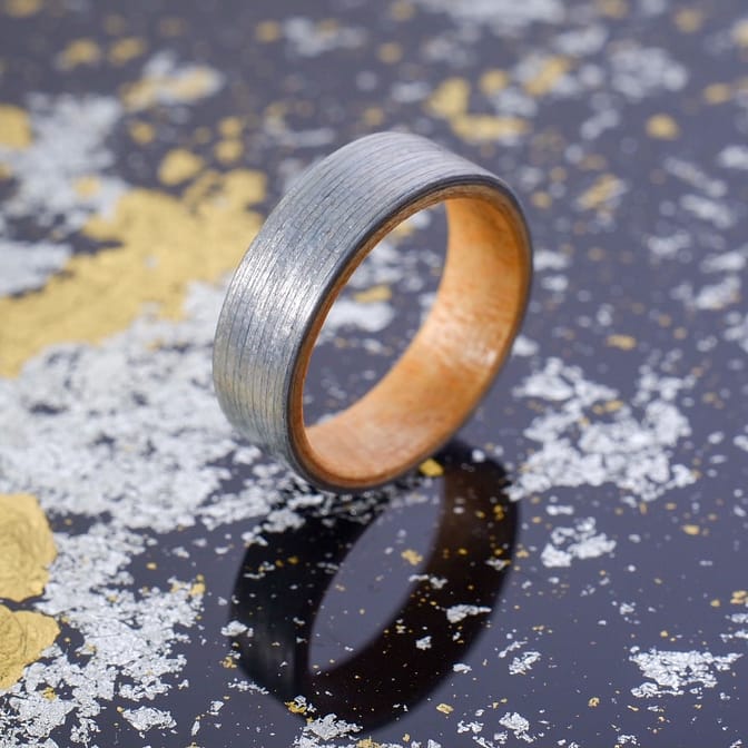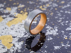 日本の伝統工芸「曲げわっぱ」と非常によく似た製法で、ブロック材をくり抜いて作る指輪に比べ強度と柔軟性に長け、湿気や汗による変化が少ないのが特徴です。